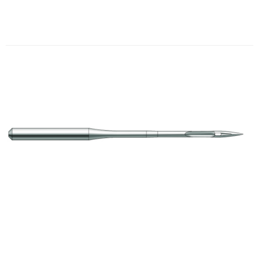 Compatível com os sistemas DBX1 / 1738 / 16X257, esta agulha possui ponta FFG (esférica fina), ideal para costurar malhas, tecidos leves e elásticos, pois desliza entre as fibras sem danificá-las.