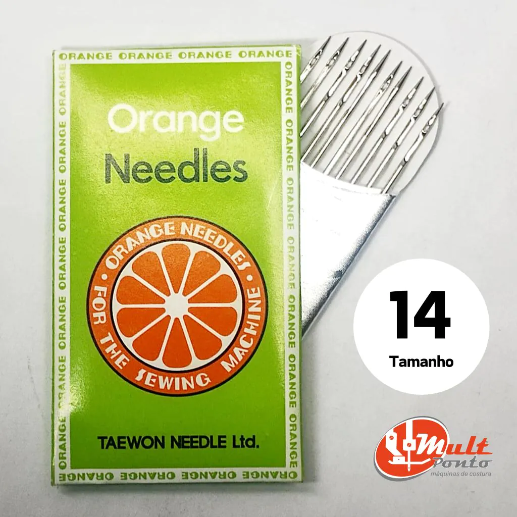 Agulhas Orange Needles Número 14 Pacote com 10 Agulhas