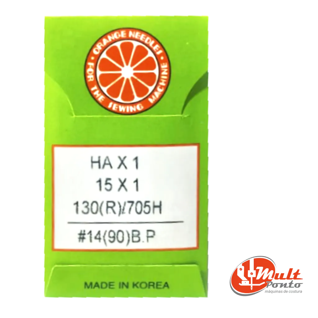 As Agulhas Orange Needles Número 14 HA X 1 / 15 X 1 proporcionam força e estabilidade para costurar tecidos mais espessos, como sarja, brim e jeans leve. Mantêm o ponto firme e uniforme, mesmo em costuras contínuas.