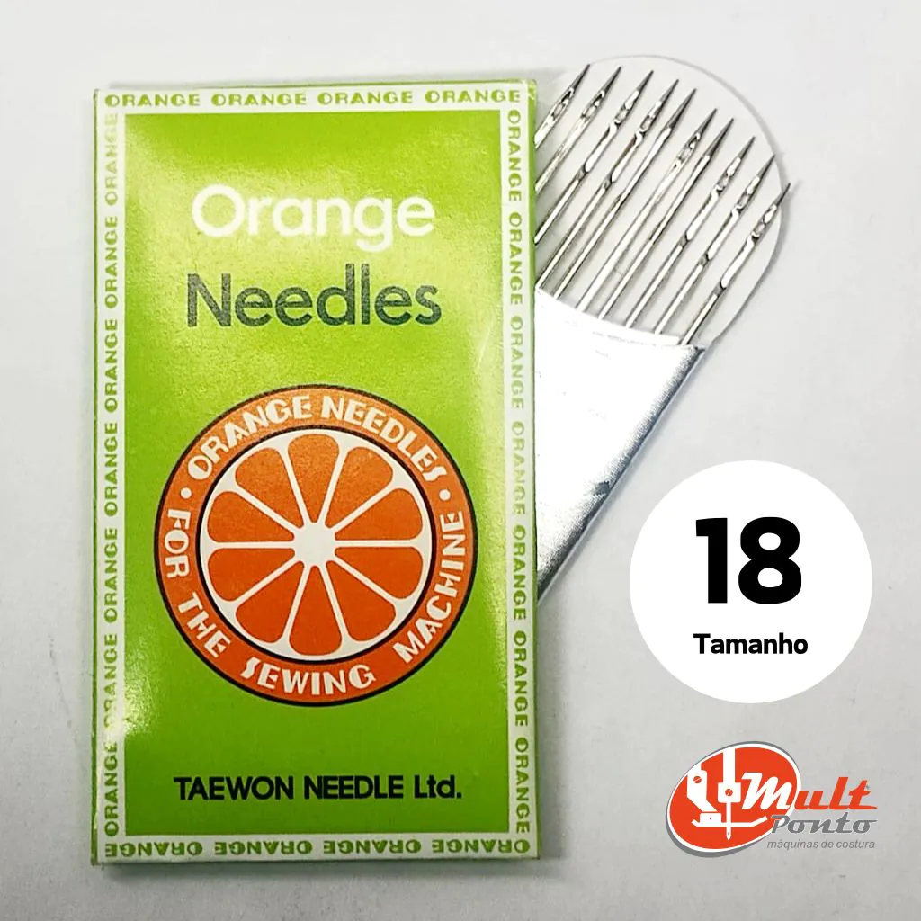 As agulhas número 18 da Orange Needles são mais indicadas para máquinas domésticas e semi-industriais. Para uso contínuo em produção industrial, recomendamos modelos específicos conforme o tipo de máquina e material trabalhado.